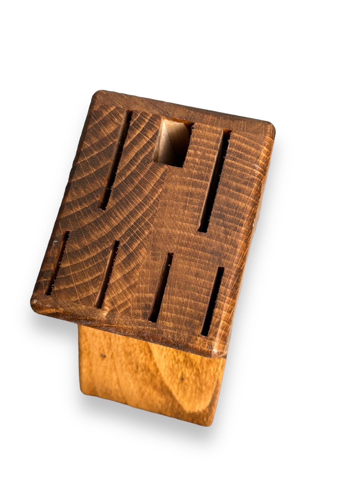 Organizirajte svoje kuhinjske pripomočke z našim lesenim stojalom za nože, ki je ročno izdelano iz kakovostnega lesa. To stojalo omogoča varno shranjevanje vaših nožev in jim hkrati zagotavlja dostopnost med kuhanjem. Njegova kompaktna velikost in naravni videz se bosta brez težav zlila z različnimi stili kuhinje. Poleg praktičnosti bo to stojalo za nože vašemu kuhinjskemu prostoru dodalo tudi estetski pridih.